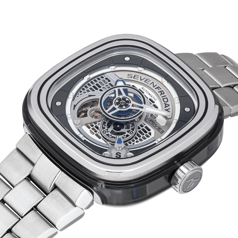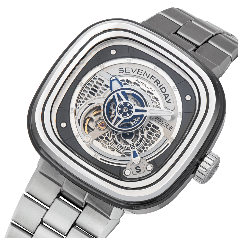 PS1/01M is the timeless PS1/01 with a factory fitted metal bracelet. The metal bracelet has been specifically designed in-house, in order to fit perfectly with our iconic case in terms of style, quality and comfort. The addition of the stainless steel bracelet to the PS1/01 turns it into a definitive statement piece.